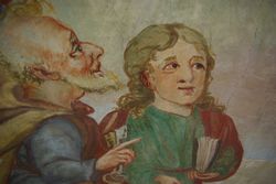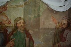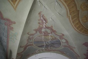Partiell durchgeführte Oberflächenreinigung an einem Deckenfresko